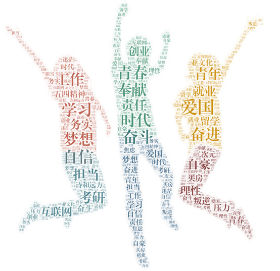此次调查,覆盖包括北京大学、清华大学、浙江大学、西安交通大学、华南理工大学、海南师范大学等在内的全国20多个省区市100所高校的1957名大学生,其中“00后”成为调查主体,占比60%,“95后”占35%,“90年到94年”占5%。他们之中,有的本科期间参军入伍,有的曾赴贫困地区支教,有的参加过亚丁湾护航……当然更多的是在学校努力学习,蓄积力量。我们看到,青春、爱国、奋斗、自信、时代、梦想等成为大学生群像的关键词,同时压力、困惑等也位列其中,这些高频词共同绘就了新时代大学生的精神图谱。