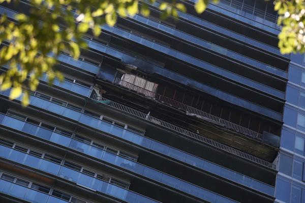2018年7月14日,杭州保姆纵火案事发地,被烧毁的绿城蓝色钱江公寓,仍有当日惨案痕迹。视觉中国 图